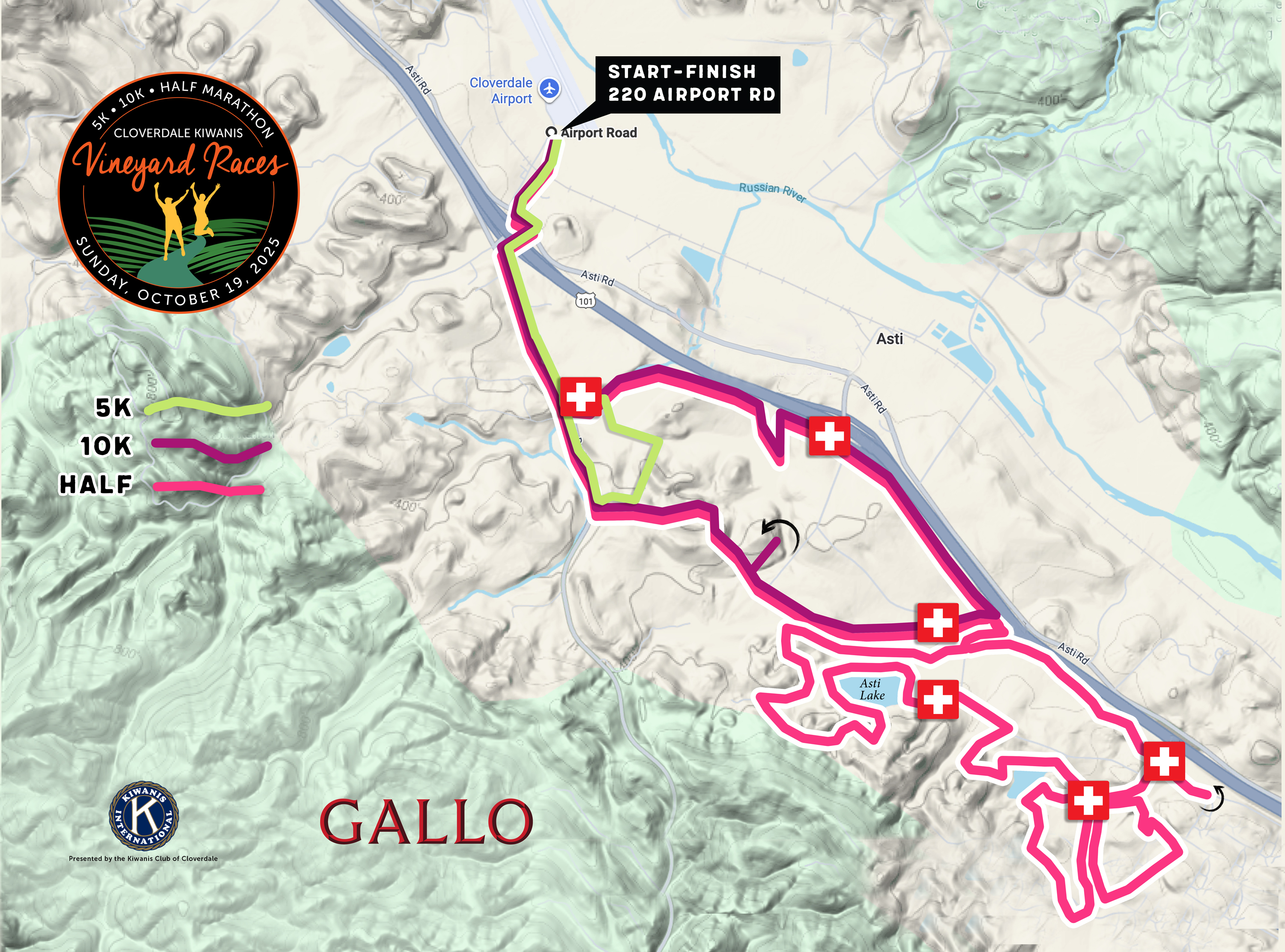 Race Information Join us for our 14th annual event, with all races in the vineyards! Experience the unparalleled scenic beauty of northern Sonoma County’s wine country as you run on packed, groomed dirt roads through vineyards resplendent in their fall colors. Our new sart/finish line is approximately 1 mile from the gate to the Barrelli Creek Vineyard so all distances will include running on quiet asphalt back roads. Note: The course is not open to the public at any time other than on race day. Though the event is less than 90 miles north of San Francisco and just 15 minutes north of Healdsburg, our natural beauty and small-town charm will feel like another world. We invite you to come spend the entire weekend as you Run The Wine Country with us!